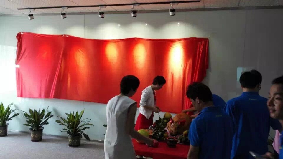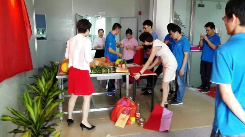 张灯结彩,喜气洋洋,全体员工一早带着激动的心情来到公司迎接这重要的时刻!