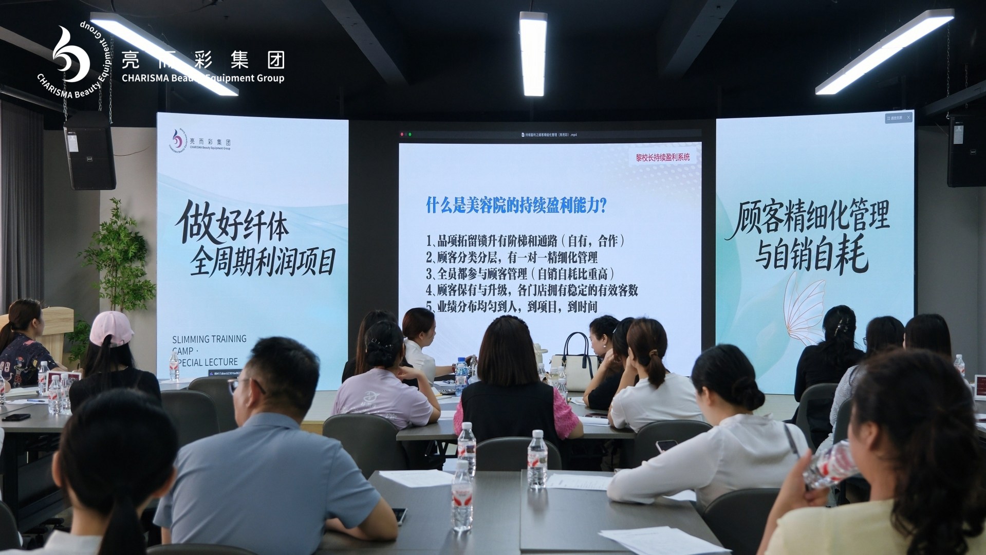 作为美容仪器行业专精特新企业,亮而彩始终深耕美业赋能,本次培训会以轻松享瘦,邀你躺赢为主题,直击门店纤体盈利痛点,搭建从服务到留存、从单次成交到长期复购的完整闭环。